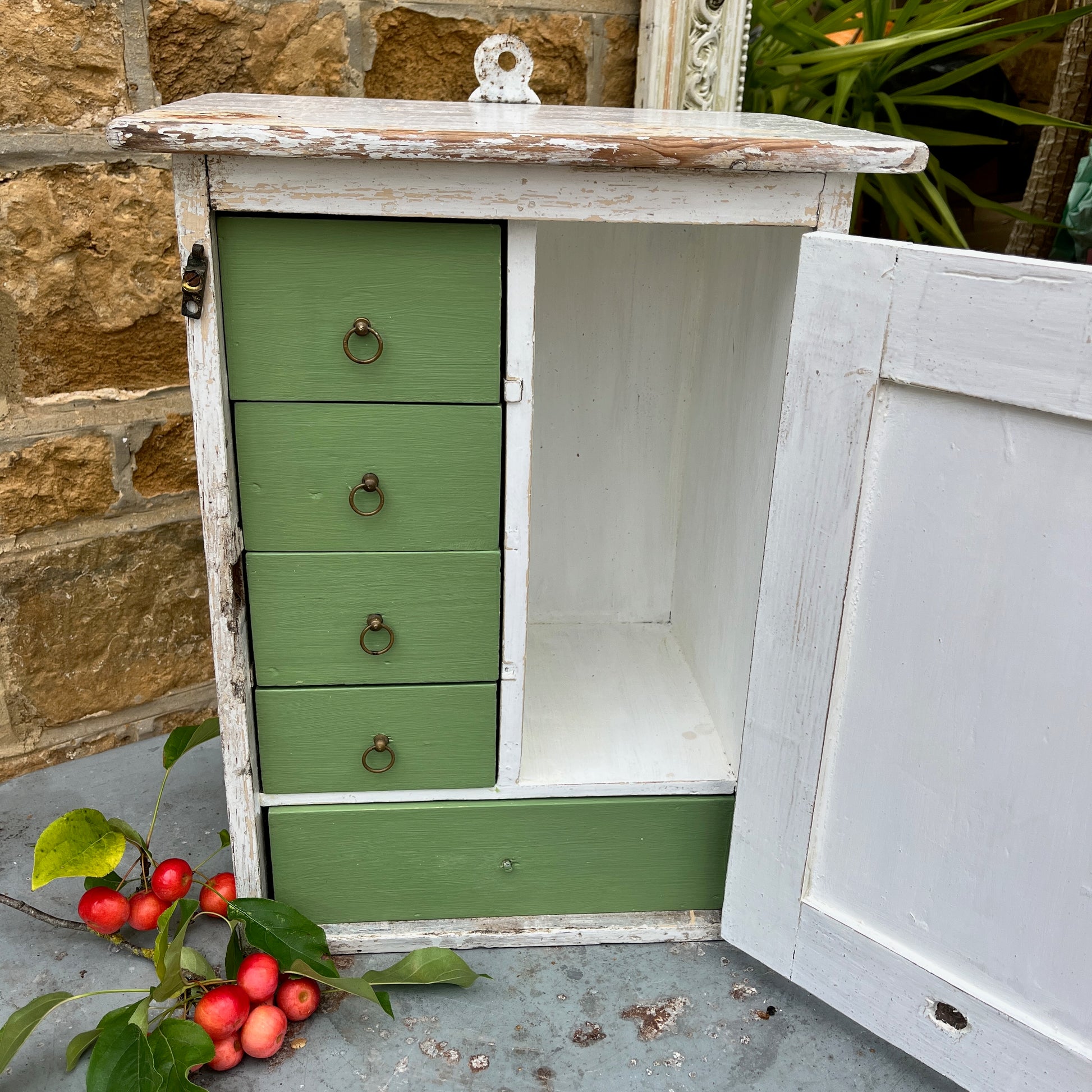 Vintage Cupboard with Green Drawers inside